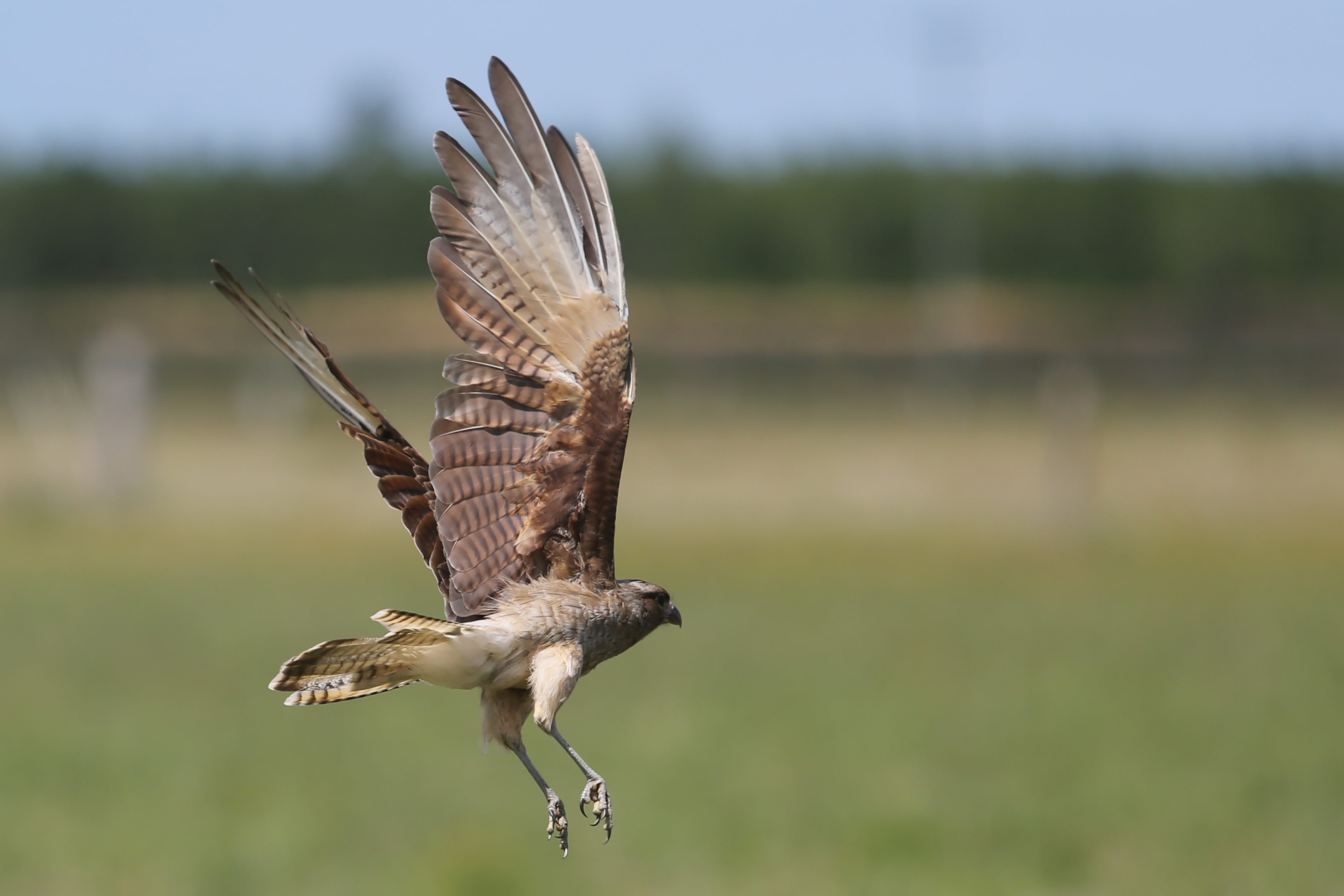 Chimango: Vive em regiões do pampa gaúcho, campos de cultura, beira do mar e praias, enfim em qualquer lugar aberto do sul do país. É gregário, ou seja, vive em bandos. Beneficia-se pela expansão de áreas agropecuárias.