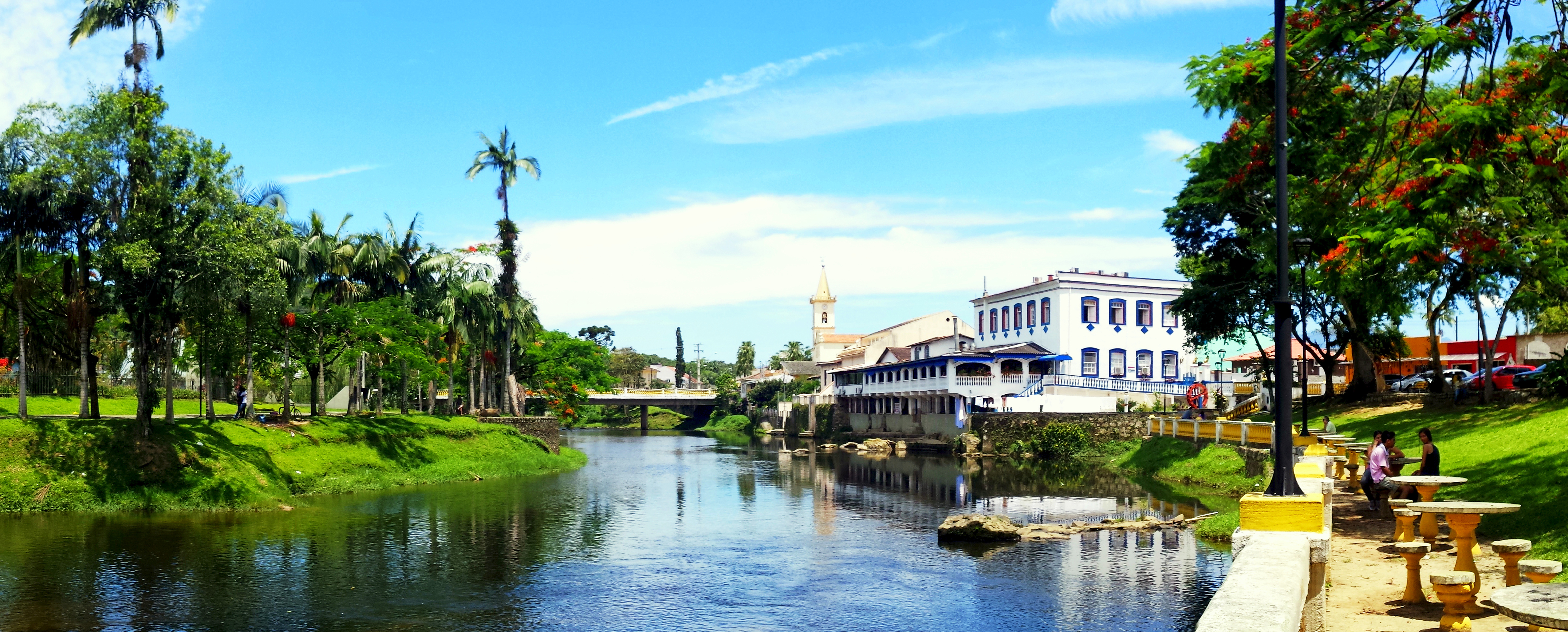 A paisagem retrata um trecho do rio Nhundiaquara, que corta a cidade de Morretes,no litoral paranaense. Foto tirada pela estagiária do MPPR Bruna Furini Lazaretti.
