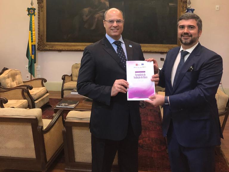 O conselheiro do Conselho Nacional do Ministério Público (CNMP) Valter Shuenquener apresentou, no dia 18 de abril, ao governador do Estado do Rio de Janeiro, Wilson Witzel, o Formulário Nacional de Risco e Proteção à Vida (FRIDA). O encontro ocorreu na sede do governo, na capital fluminense.