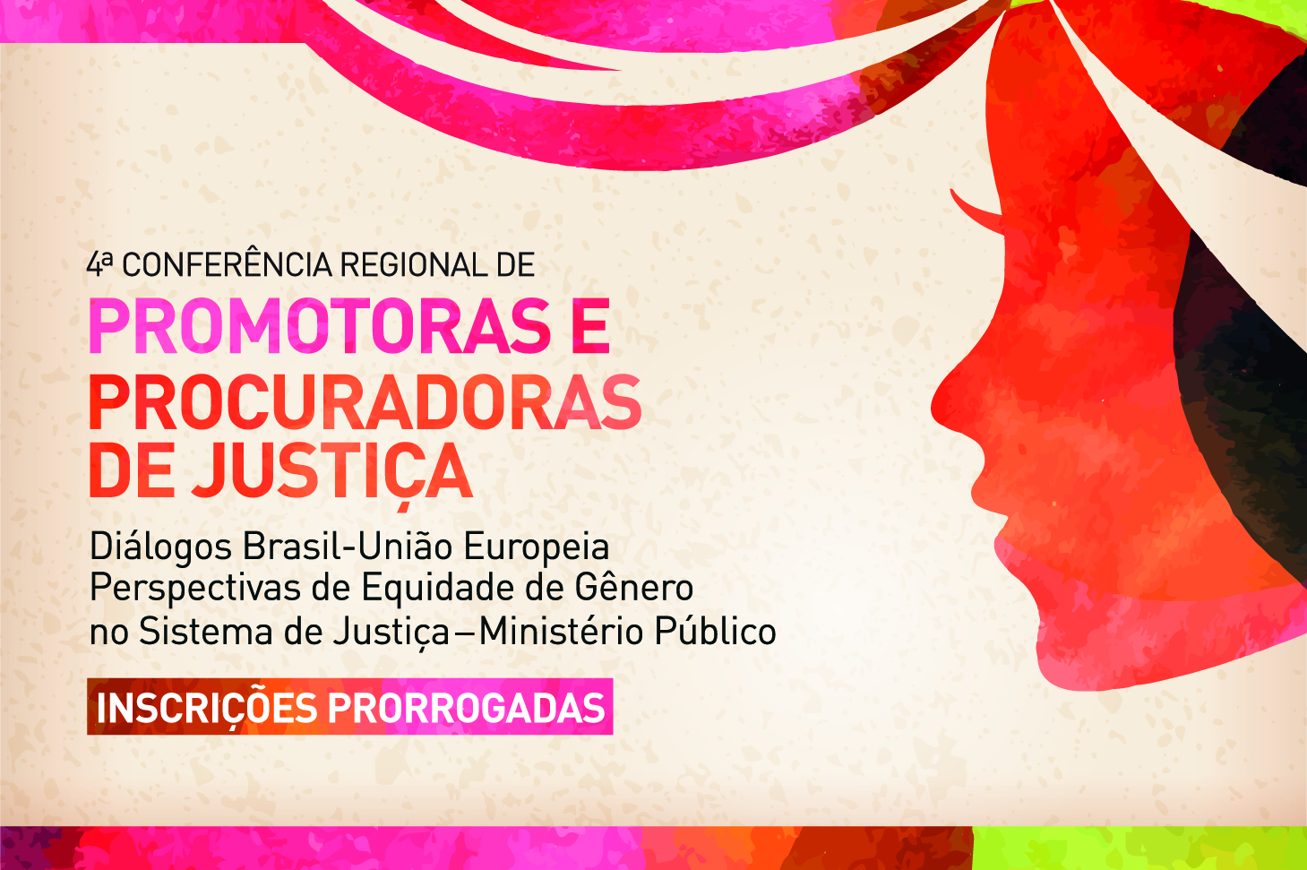 Foram prorrogadas, até as 14 horas do dia 22 de maio, as inscrições para o processo seletivo que irá escolher interessadas em participar da “4ª Conferência Regional de Promotoras e Procuradoras de Justiça dos Ministérios Públicos Estaduais da Região Sudeste”. O evento acontece nos dias 7 e 8 de junho, em São Paulo-SP, e tem o objetivo de trocar boas práticas e experiências referentes à representatividade feminina no Ministério Público.