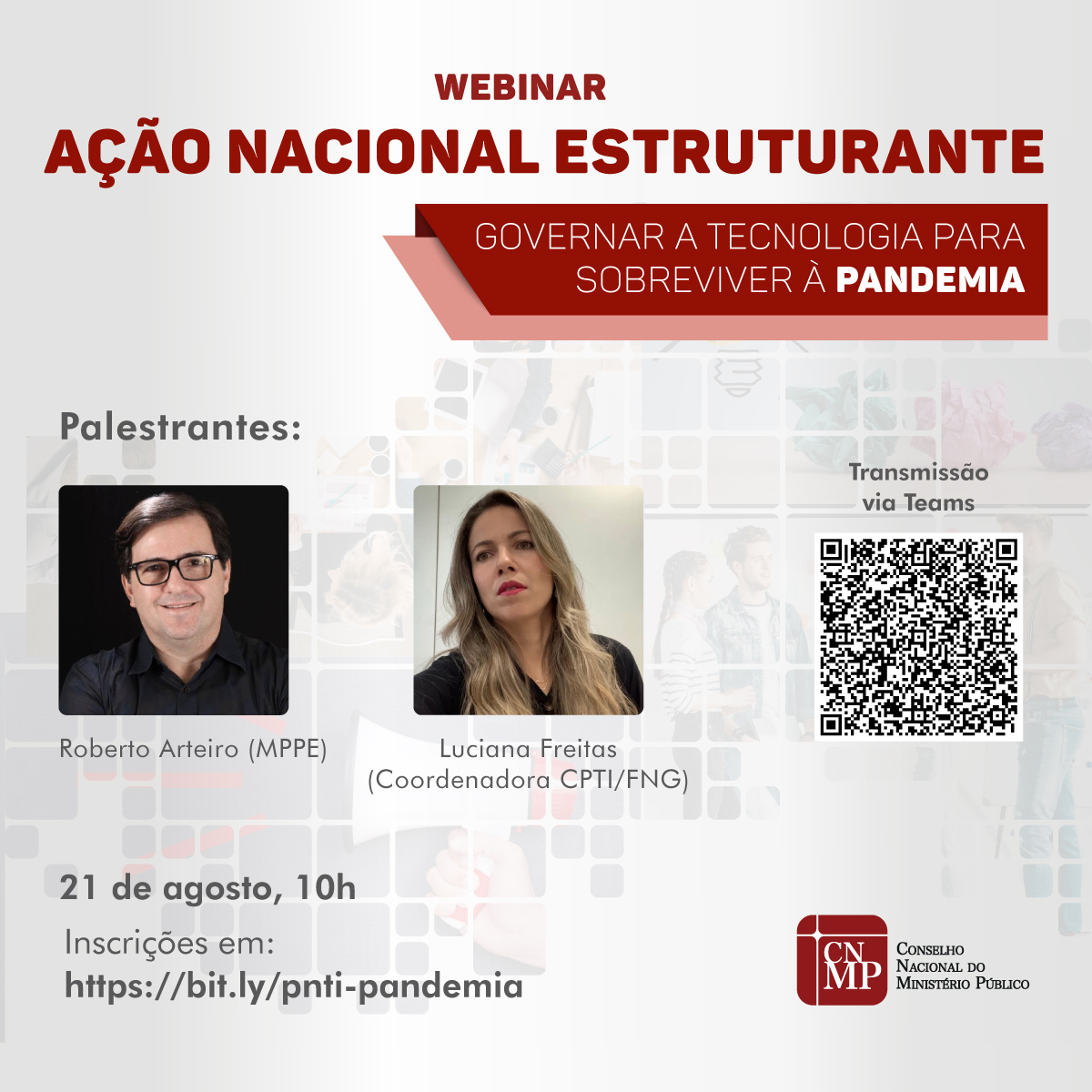 A transmissão abordará, entre outros temas, o papel da governança do uso da tecnologia para sobrevivência institucional, a função do PNTI no referido processo e o engajamento com as práticas do PNTI.