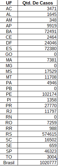 | Tabela de resultados |